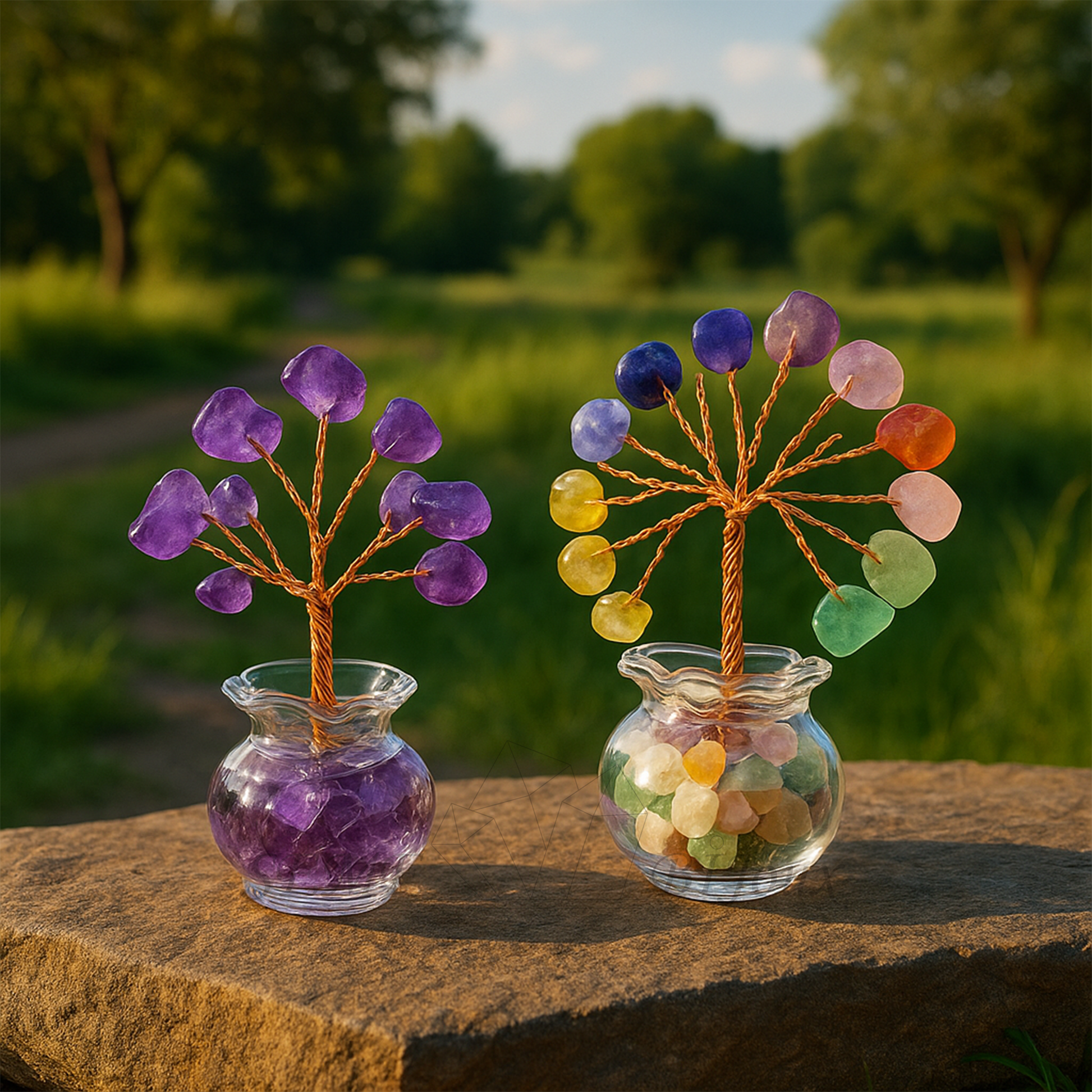 Composé de sept pierres naturelles symbolisant les chakras, cet arbre énergétique multicolore est une invitation à l’équilibre et au bien-être. Chaque cristal reflète une vibration unique, pour harmoniser corps, esprit et émotions.