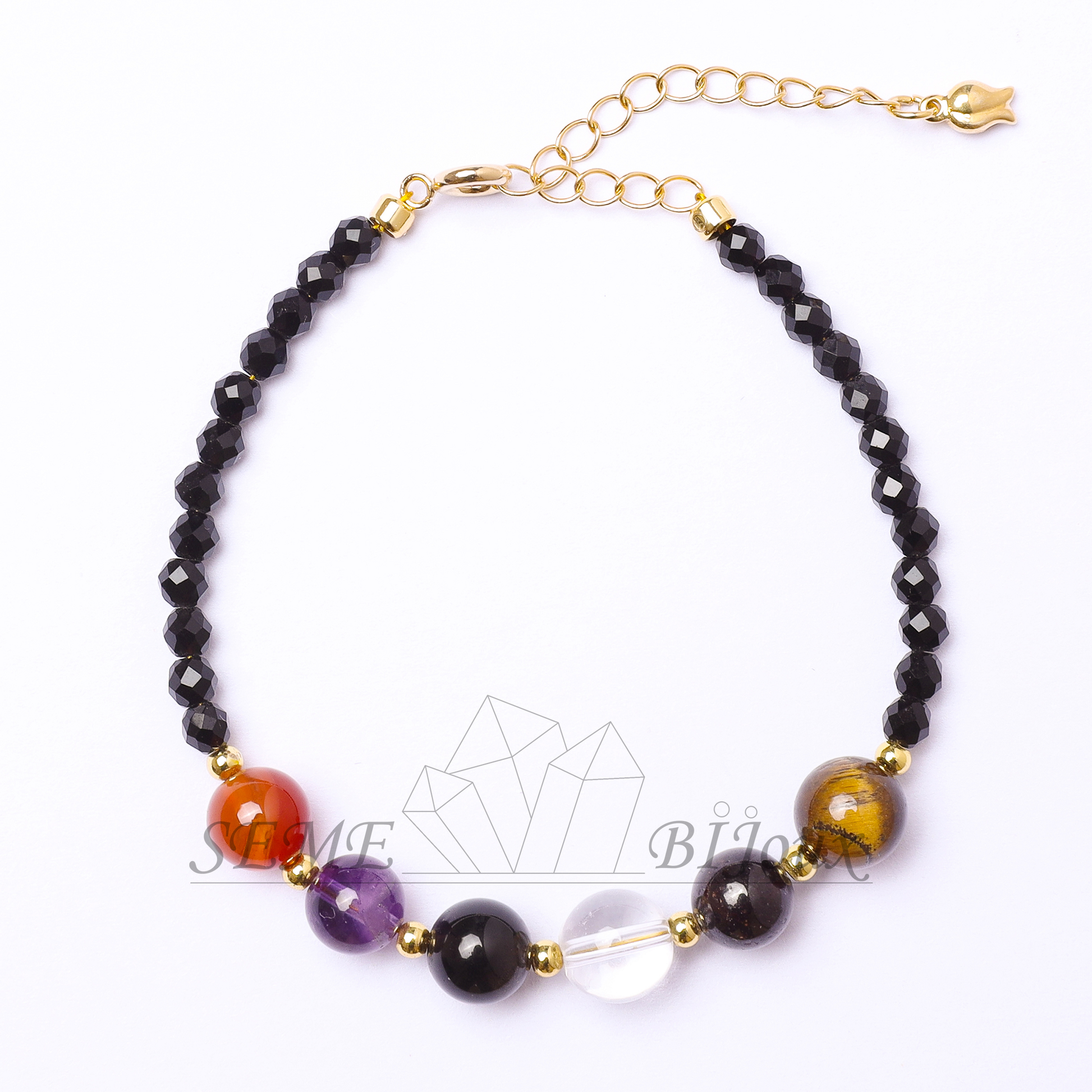 🖤 Perles secondaires : Pierre naturelle noire facettée – touche sobre, renforce l’ancrage