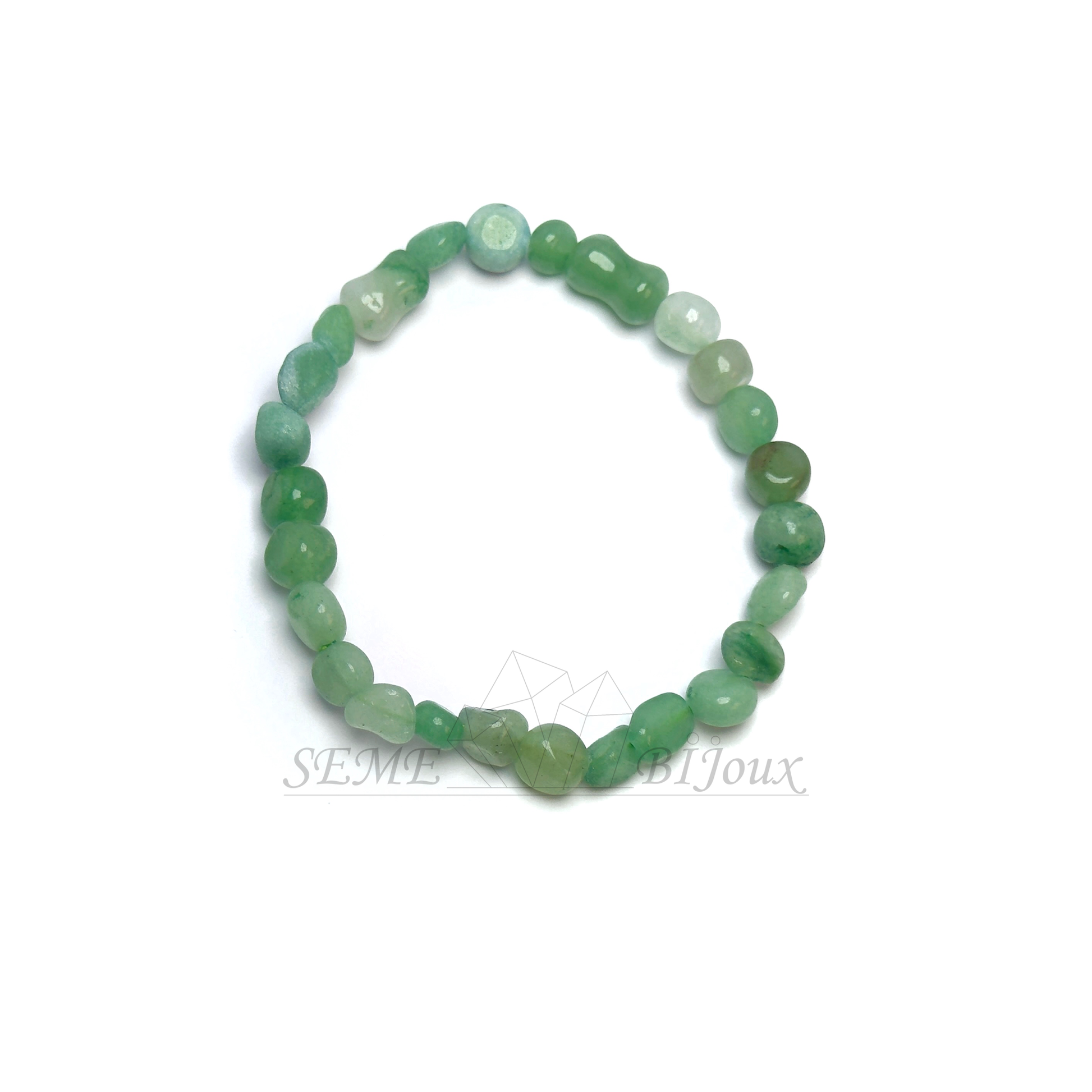 Ce bracelet en aventurine verte offre une sensation de douceur et de fraîcheur grâce à ses perles plates naturelles.